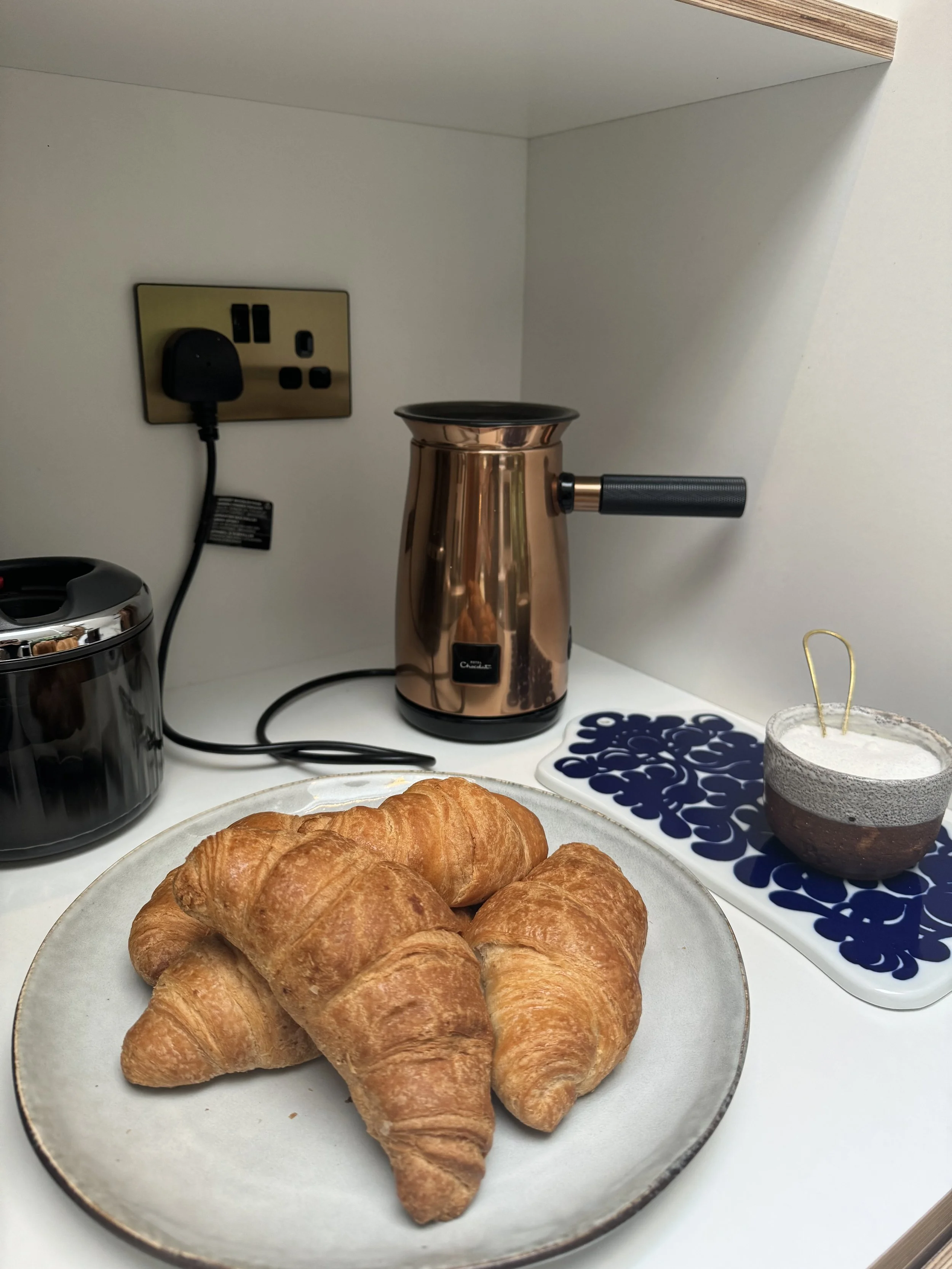 Location : St Agnes, CornwallCabinets: SOAP bespoke - Melamine faced Birch plywood cabinetsMaterials and finishes: Birch Plywood doors Egger Pistachio and Formica Rosa laminates + Walnut stained Birch plywood + Brushed gold laminated plinthsHandle detail : Inset recessed circular with brushed gold revealWorktops: QuartzAdditional Information : Bespoke cabinet designed to suit down draft extraction hob.