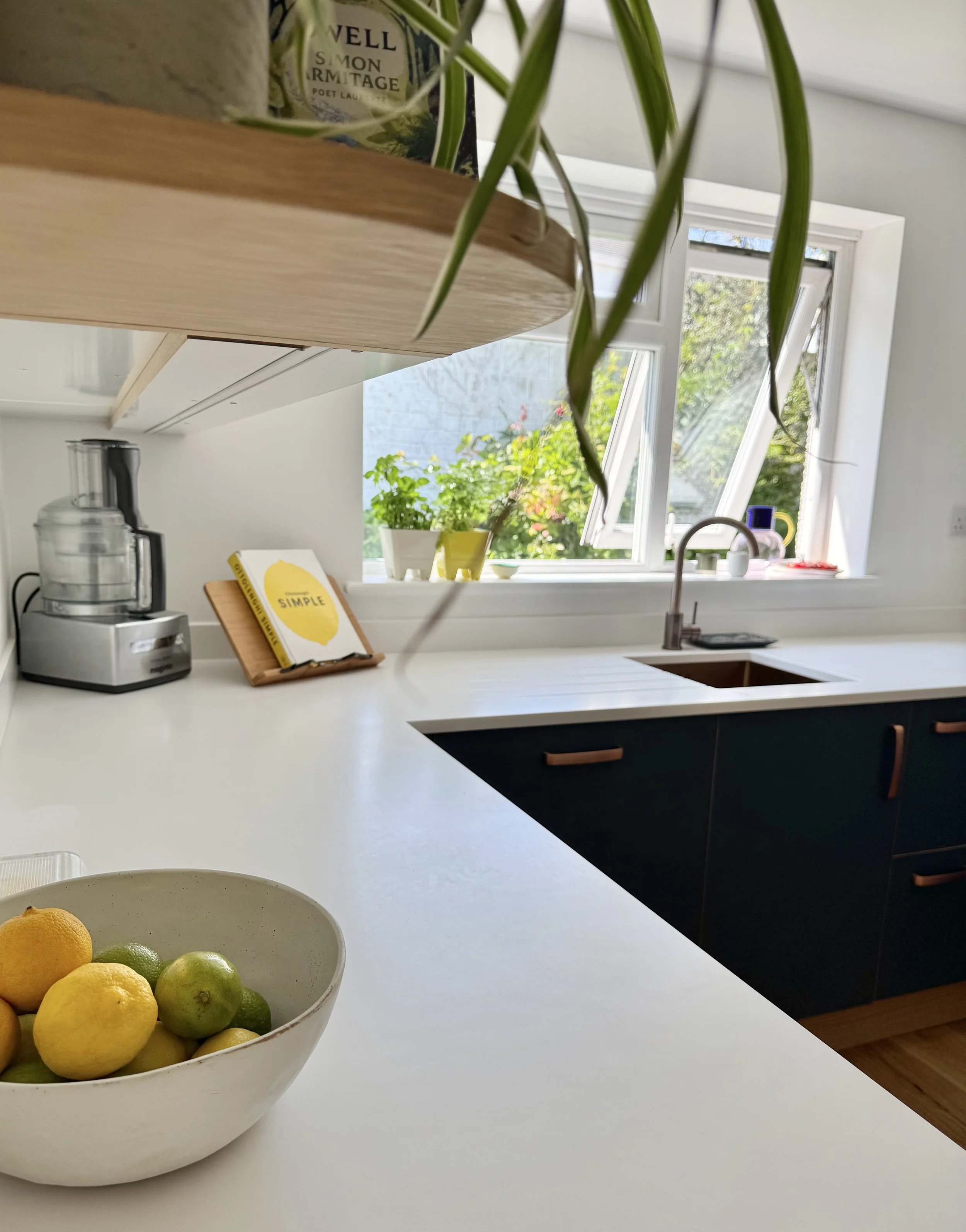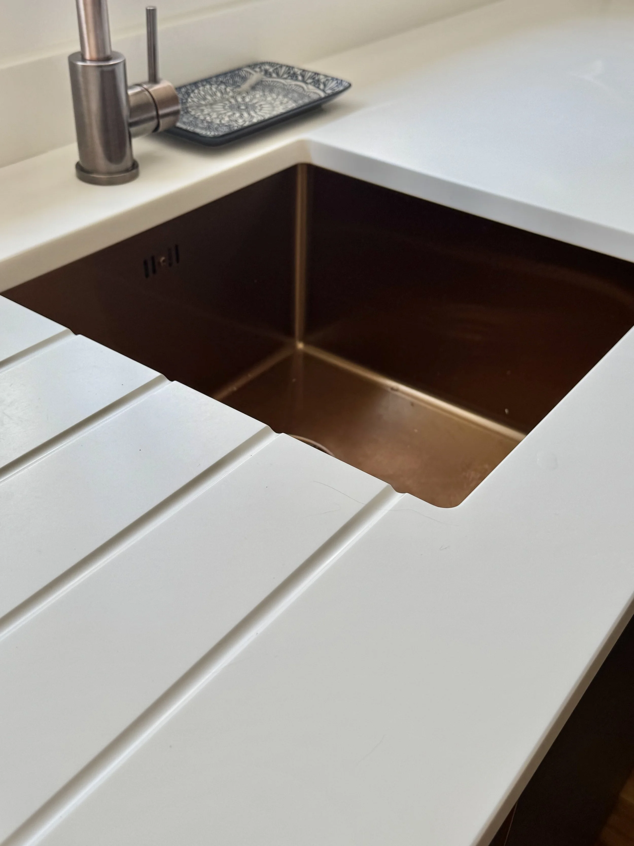 We supply and fit made to measure solid surface resin based worktops from Pietra. Suitable for kitchens and bathrooms. Fabricated in our Newquay workshop and delivered to you. Contact us for a quote.