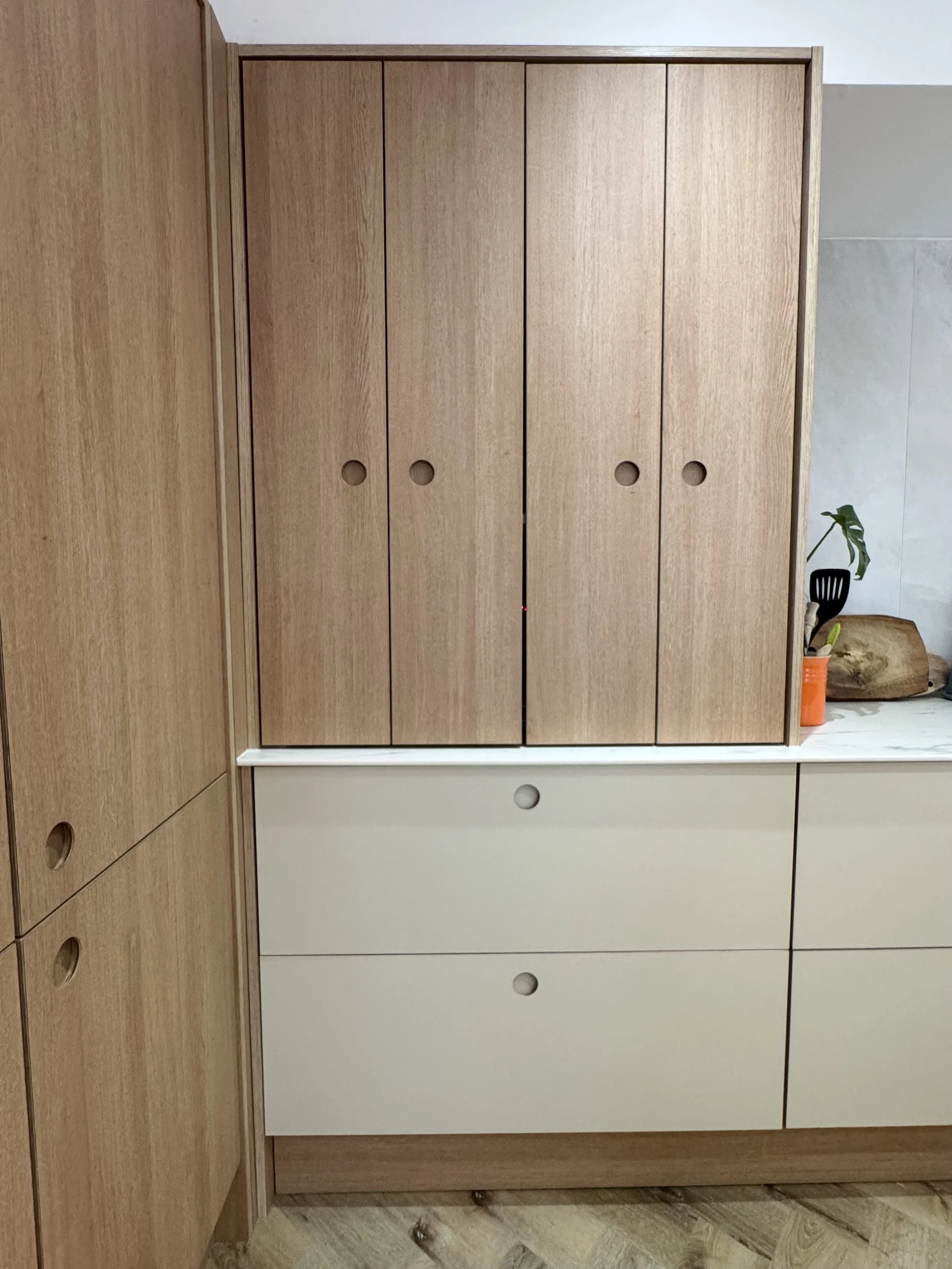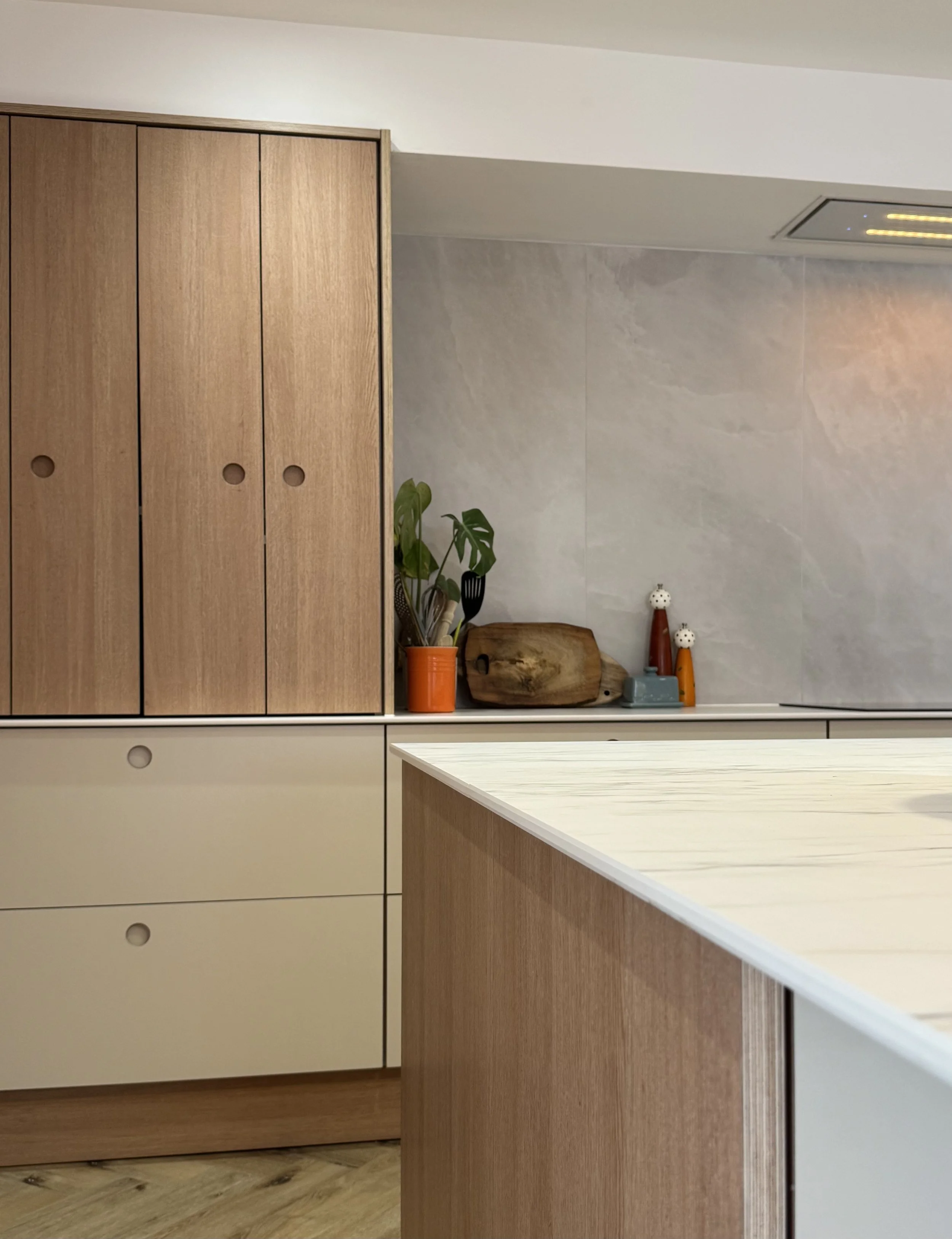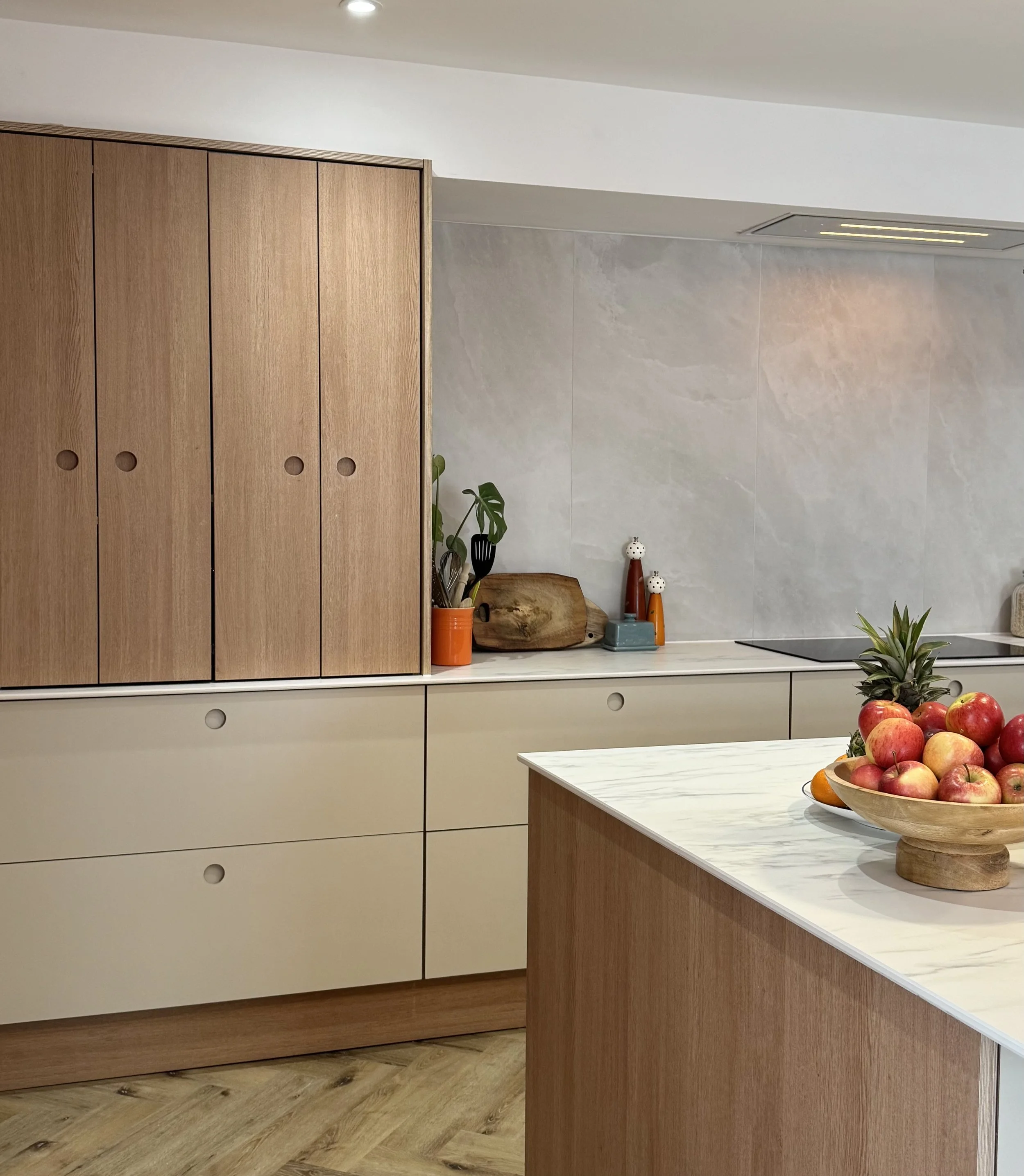 Elevate your off-the-shelf kitchen cabinets with our stunning SOAP doors and panels that transform the ordinary into the extraordinary. We’ve been dedicated to crafting high-quality plywood fronts for kitchens since 2014. Our collection features a range of natural veneer finishes, including the timeless beauty of Birch, Oak, and Walnut, as well as an extensive catalogue of laminated options sourced from trusted brands like Formica, Egger, and Fenix. Each of our kitchen doors is designed to be both visually stunning, durable and personal to you. The process to get started is simple; all we require are your kitchen plans from providers such as Howdens, Ikea, or a components list. Once we have those details, we can swiftly provide you with a complimentary quote for everything you'll need to create a truly unique and personalized kitchen space. Made in Cornwall but available for delivery across the UK.