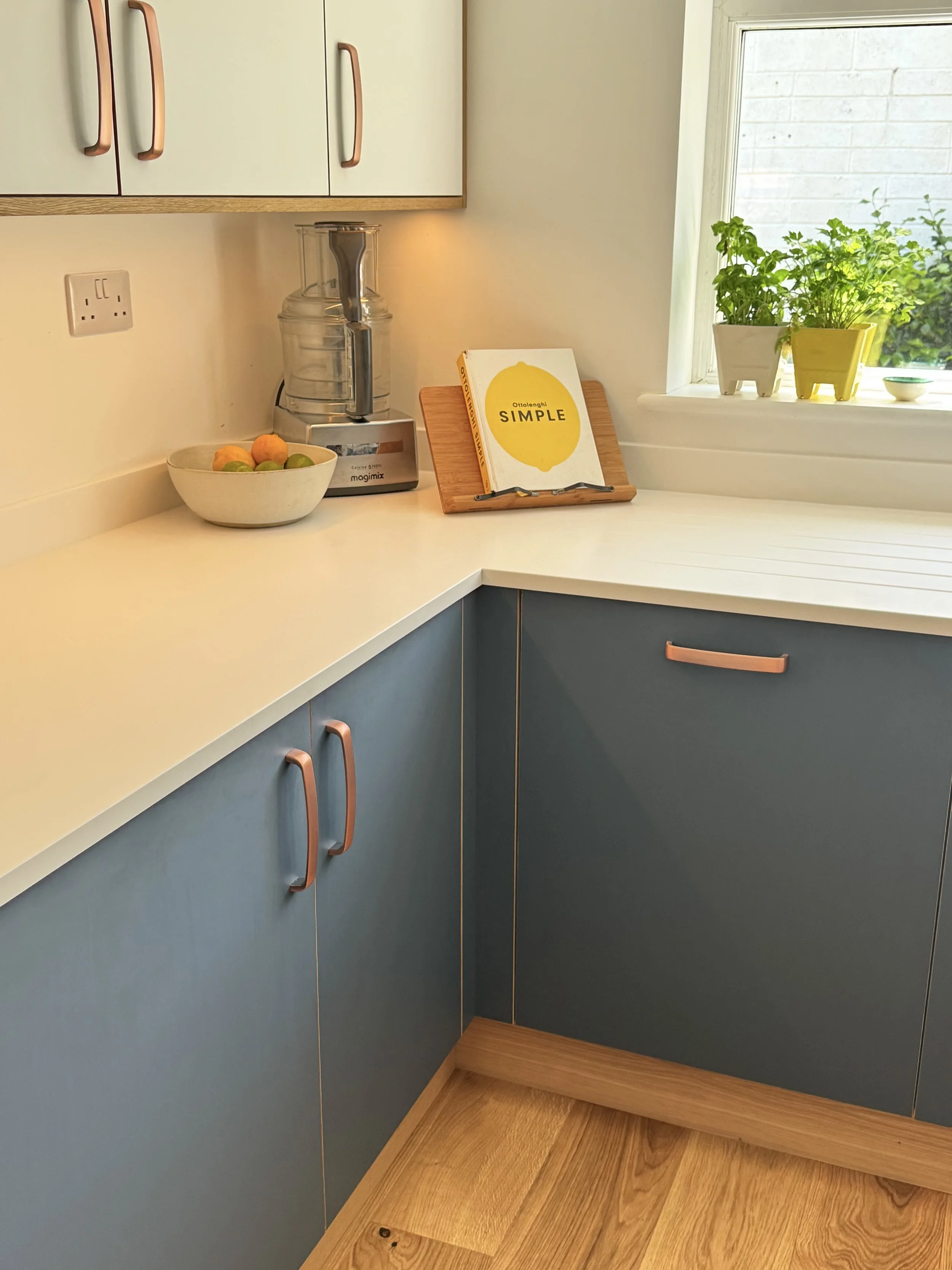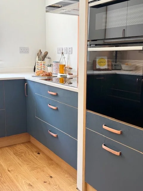 Once we have agreed on all the elements you need you can then select the finish and handle detail you would like for your bespoke kitchen. We offer natural birch plywood, Fenix and Formica finished products. You can mix and match through their colour ranges and materials to make the kitchen just as you want.